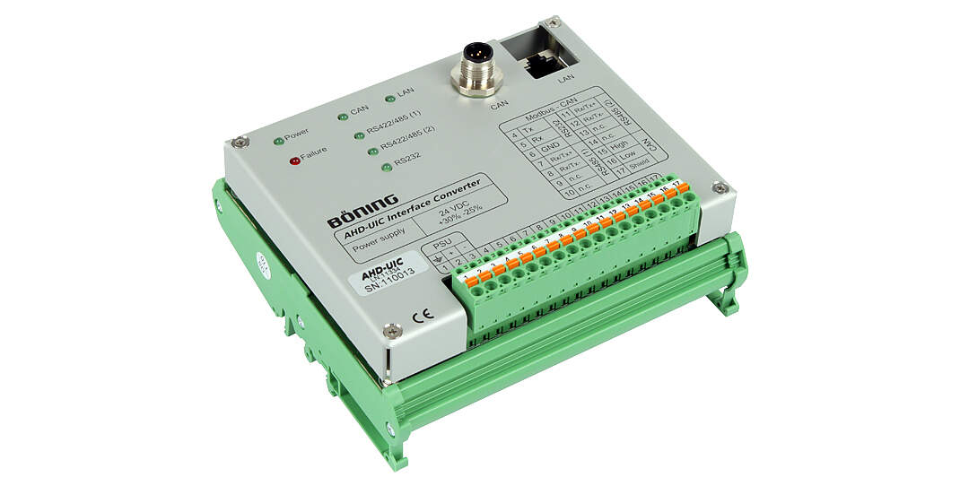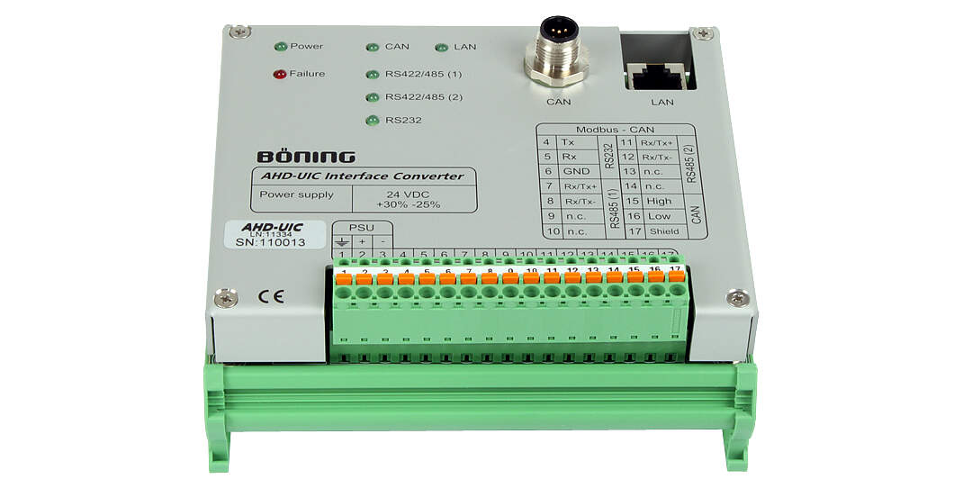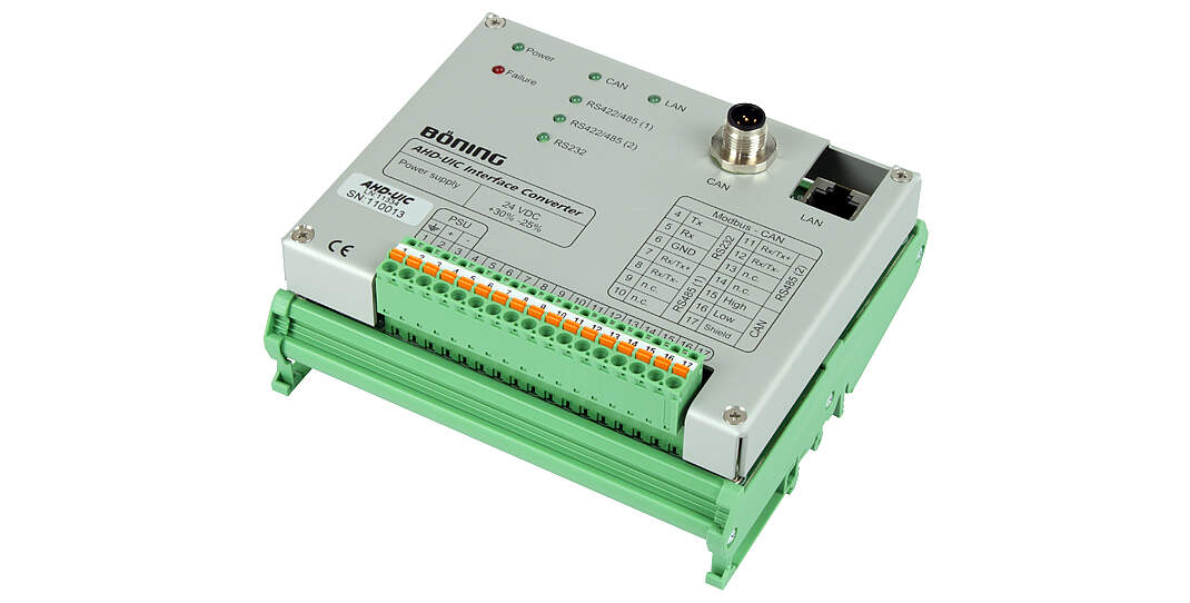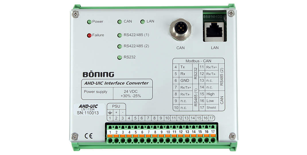 Der Protokollkonverter AHD-UIC ist ein mikroprozessor-gesteuertes Gerät zur rückwirkungsfreien Erfassung von Daten aus Fremdsystemen mit Modbus RTU Kommunikationsprotokoll. Die Daten werden konvertiert und auf den CAN-Bus zur Anzeige auf Displays des Schiffsalarmsystems gegeben.