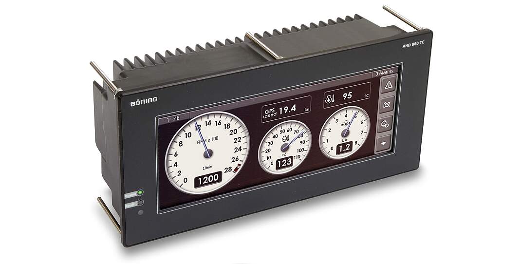 - Das Display eignet sich besonders für Anwendungen mit Motorsystemen namhafter Motorhersteller (MAN, MTU, Caterpillar, Volvo-Penta, Cummins etc.) sowie für Nachrüstungen und Umbauten