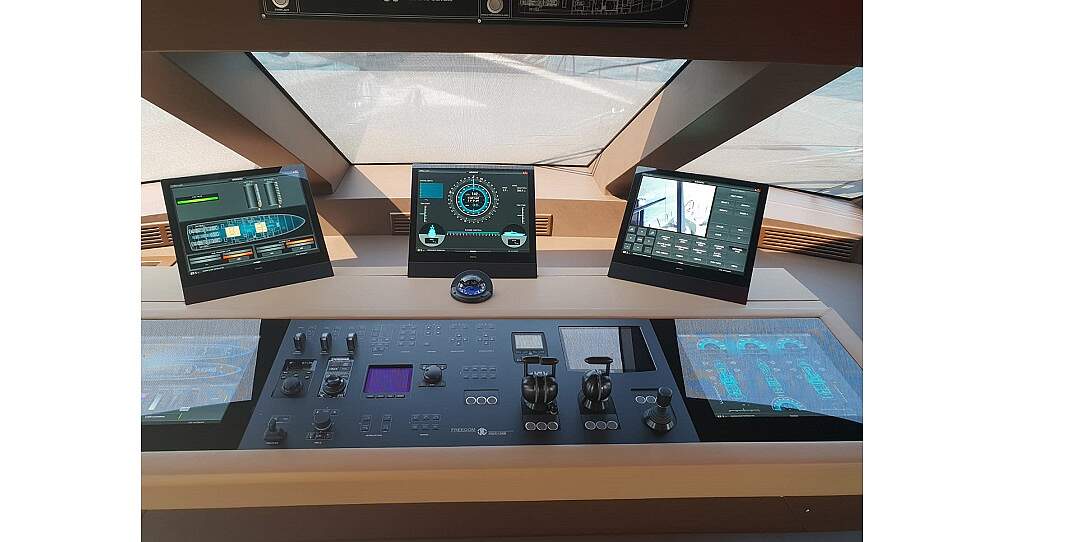 The newest-generation capacitive touchscreen allows comfortable operation without visible threads. The latest display technology allows for even more brilliant colors and a markedly increased view angle. They can be conveniently operated with the remote controls (AHD-DRM T and AHD-DRM R) or from an external PC – for example from the command chair on the bridge. Their 24 V DC power supply makes these devices especially suitable for use on ships.